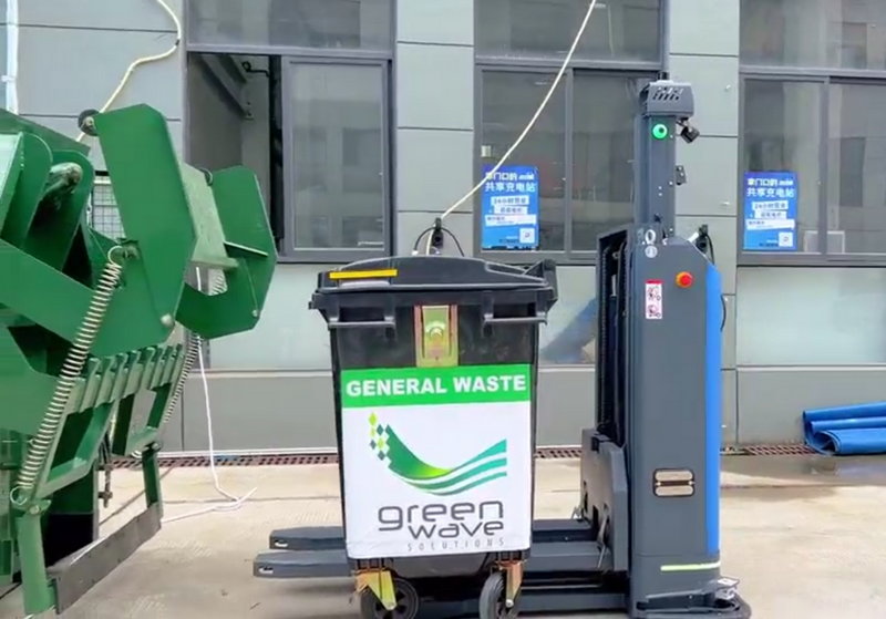 Smart, self-navigating forklift robot that takes the grind out of waste handling